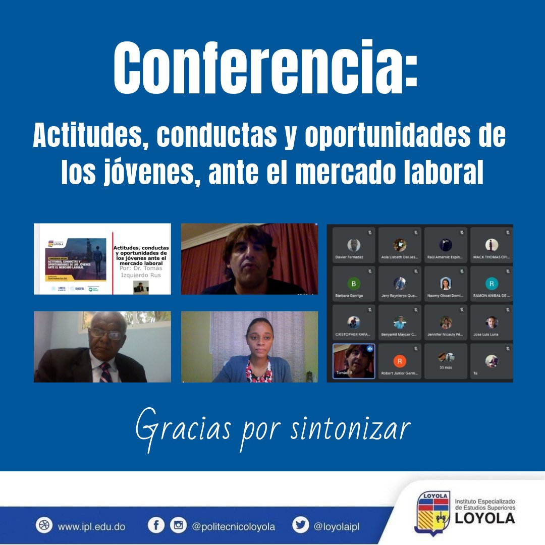 El Instituto Especializado de Estudios Superiores Loyola (IEESL), a través de la cátedra de Humanidades, organizó la conferencia virtual "Actitudes, conductas y oportunidades de los jóvenes ante el mercado laboral", dictada por Tomás Izquierdo, especialista en Psicología, Ciencias de Salud y catedrático de la Universidad de Granada.