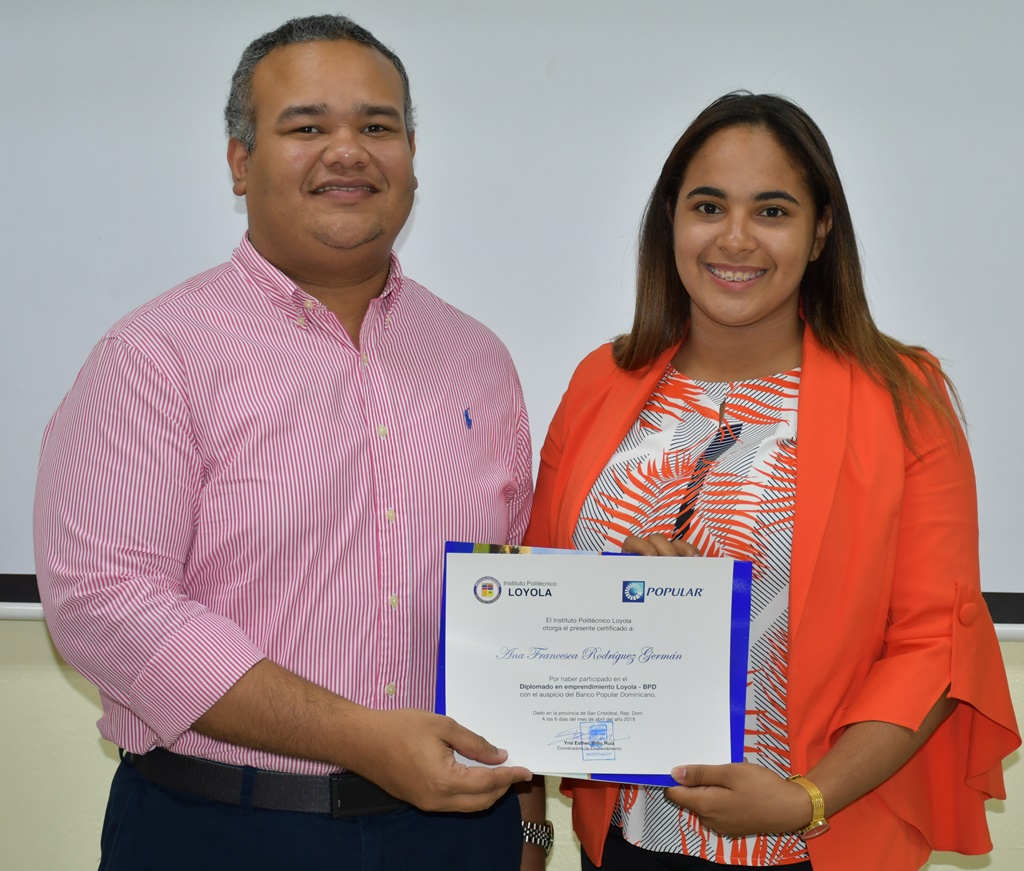 Estudiantes de los niveles Secundario Técnico y Superior del Instituto Politécnico Loyola (IPL), recibieron el pasado sábado 6 de marzo sus certificados del Diplomado en Emprendimiento auspiciado por el Banco Popular.